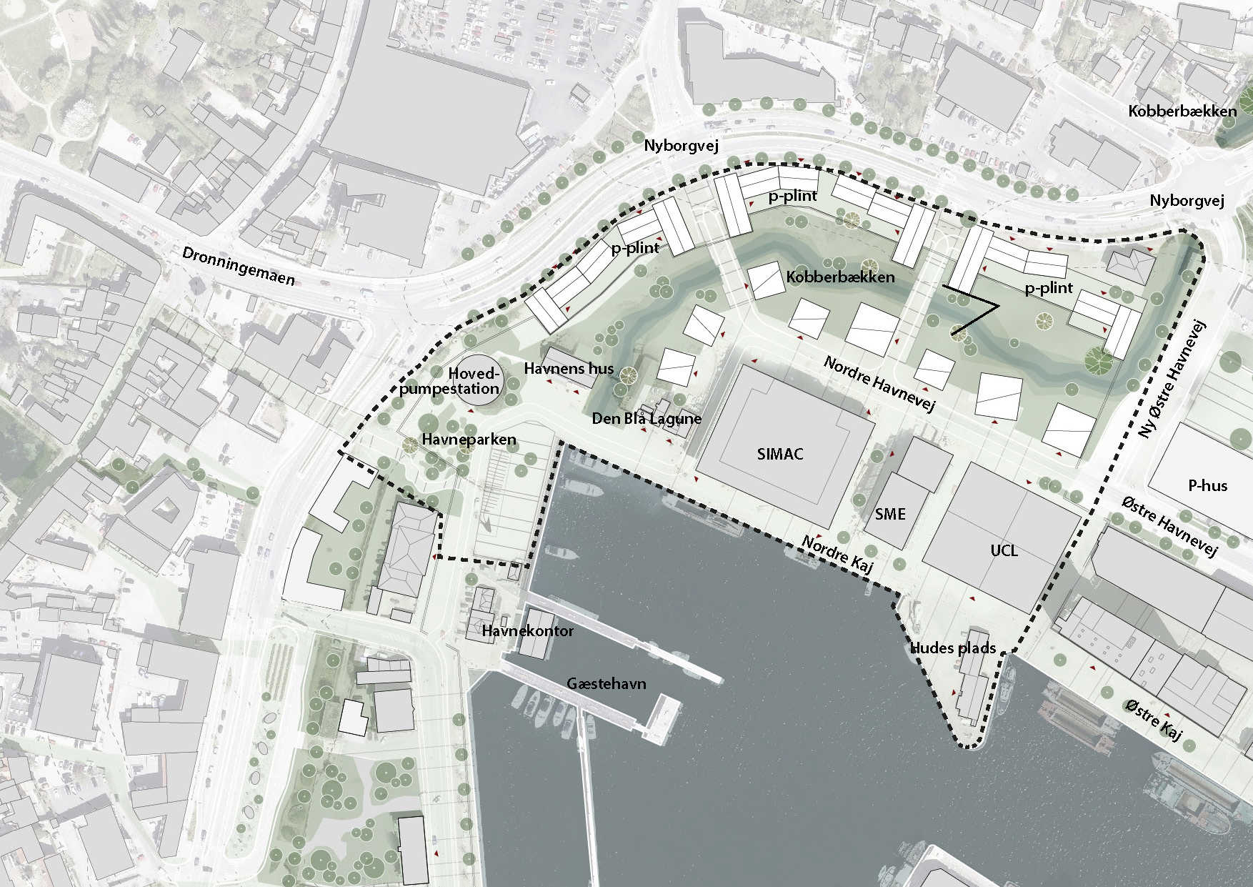 Et blandet bykvarter, en havnepark for rekreativt ophold samt åbning af Kobberbækken.