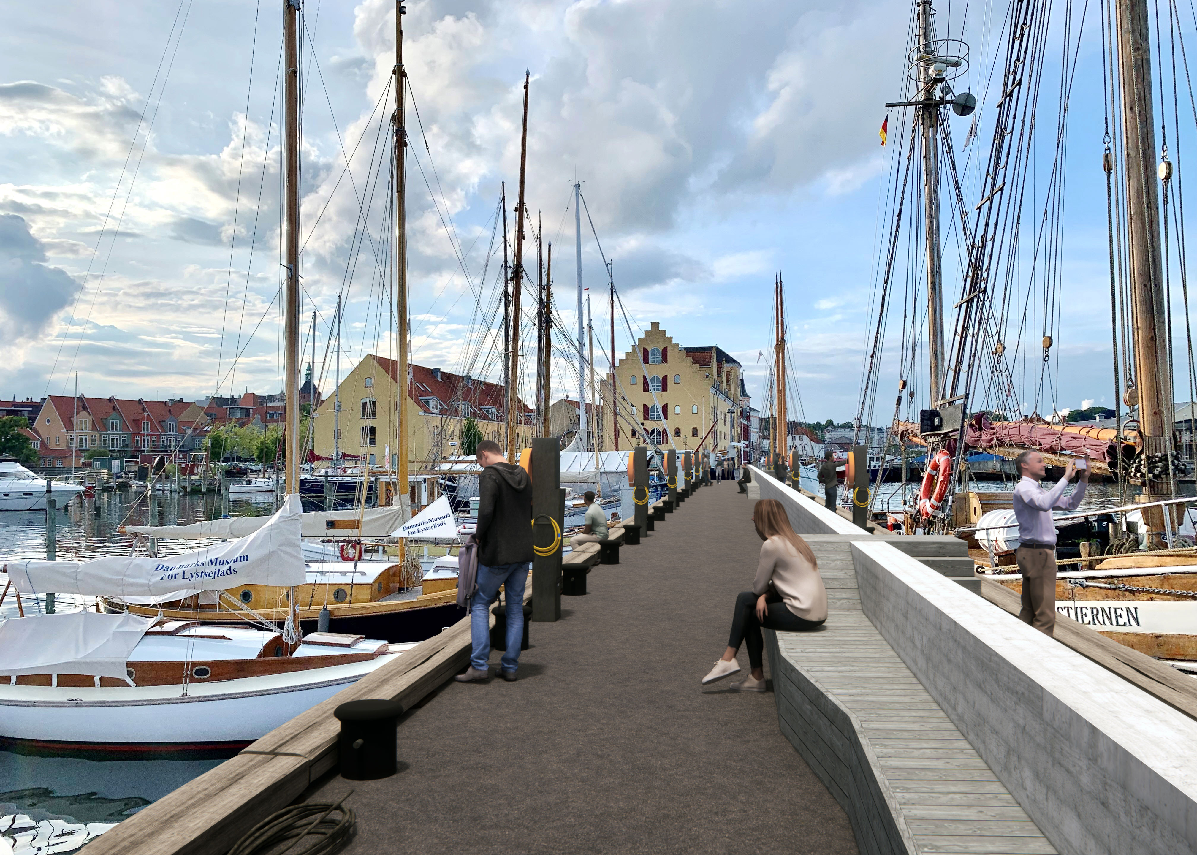 Samtidig skabes nye byrum, hvor borgere og besøgende kan gå og nyde havnefronten hele året rundt. Ligesom de nye moler fortsat skal anvendes til de mange skibe i havnen.
